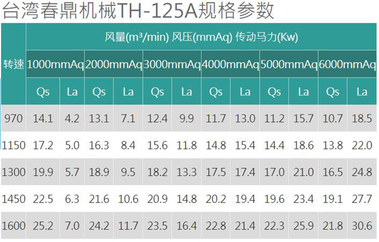 TH型羅茨鼓風機產(chǎn)品規(guī)格: