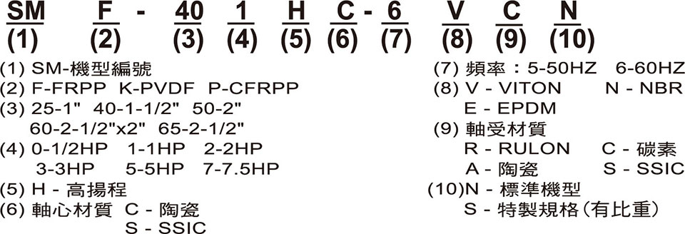 高揚(yáng)程耐酸堿泵SM型型號說明: