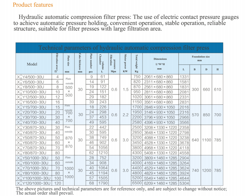 型號:液壓自動壓緊壓濾機