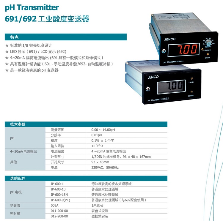 l 具有溫度補償功能(691-手動溫度補償/692-自動溫度補償)