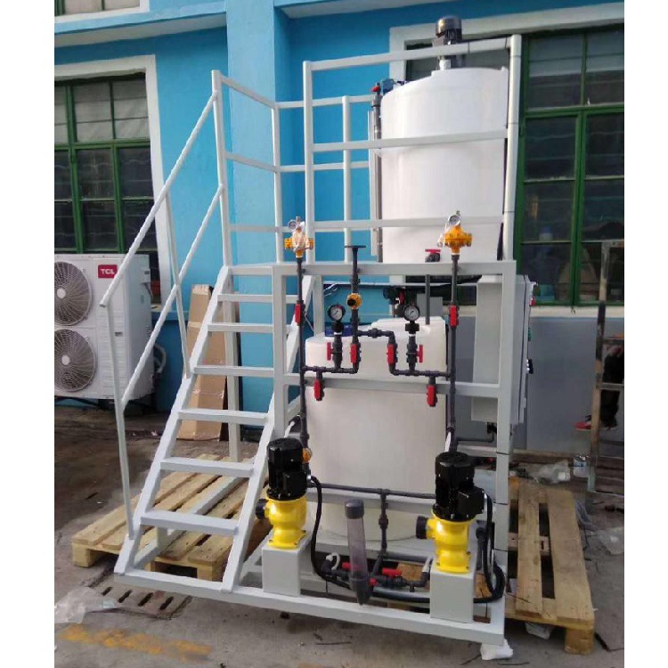 加藥裝置又稱“全自動絮凝劑投配裝置”、“兩廂式加藥裝置”,AINFO系列加藥裝置專門針對某些濃溶液、固體粉粒(如高分子藥劑)具有難溶解、易結塊、長期暴露空氣易凝結等特點二設計制作。解決了常規簡易泡藥不能充分溶解,人工投加卻會產生浪費人力、投加量、溶液濃度不準確等諸多問題。本系列為一套稀釋。攪拌及計量濃容易、固體粉粒(高分子絮凝劑)溶液的自動配置裝置。適用于高濃度絮凝劑溶液的制備。
