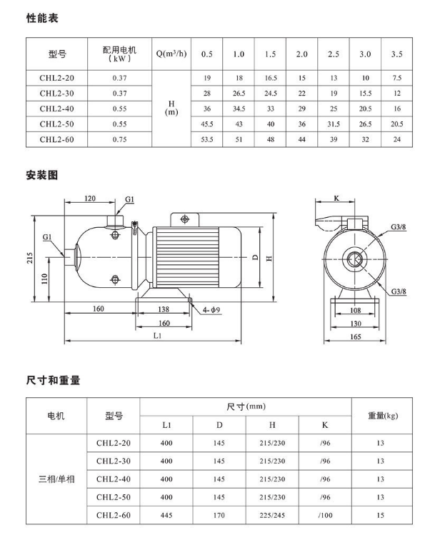 南方離心泵CHL2系列型號參數(shù)如下: