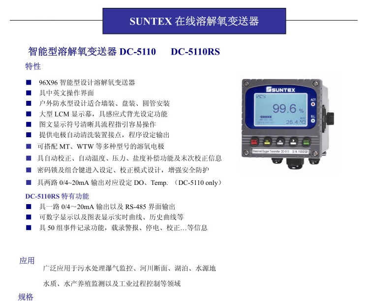 (SUNTEX)在線溶解氧DC-5110
