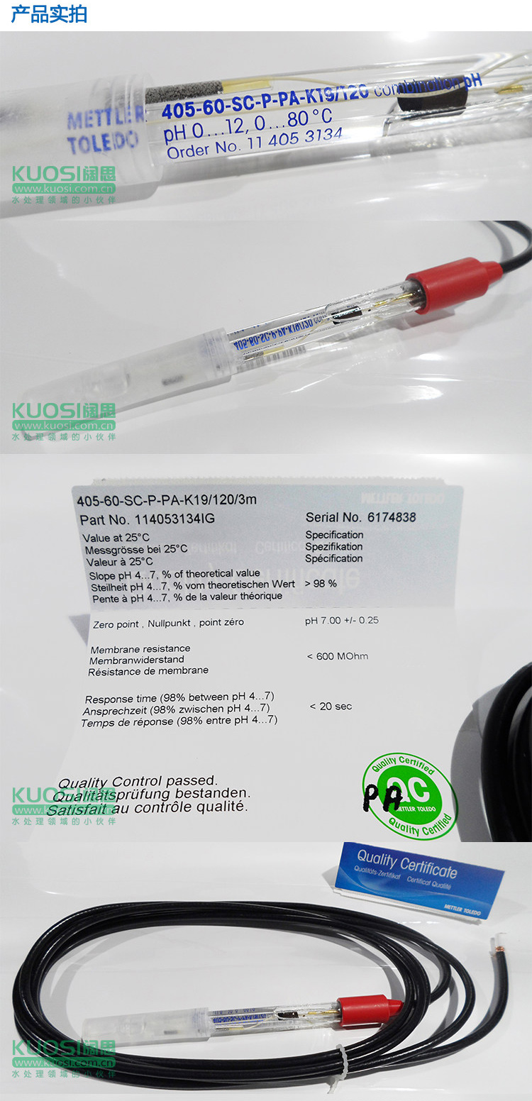 梅特勒ph電極405-60-SC工業在線ph計便攜式電極傳感器探頭測試儀