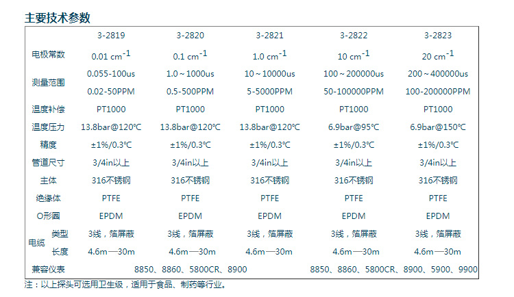 2819-2823電導(dǎo)率/電阻率電極可以采用多種安裝方式,能確保良好的準(zhǔn)確度和重復(fù)性。標(biāo)準(zhǔn)材料為316不銹鋼或鈦,也可選用其他材料。可選用衛(wèi)生型法蘭。電極中內(nèi)置PT1000熱電阻,對溫度進(jìn)行測量。
