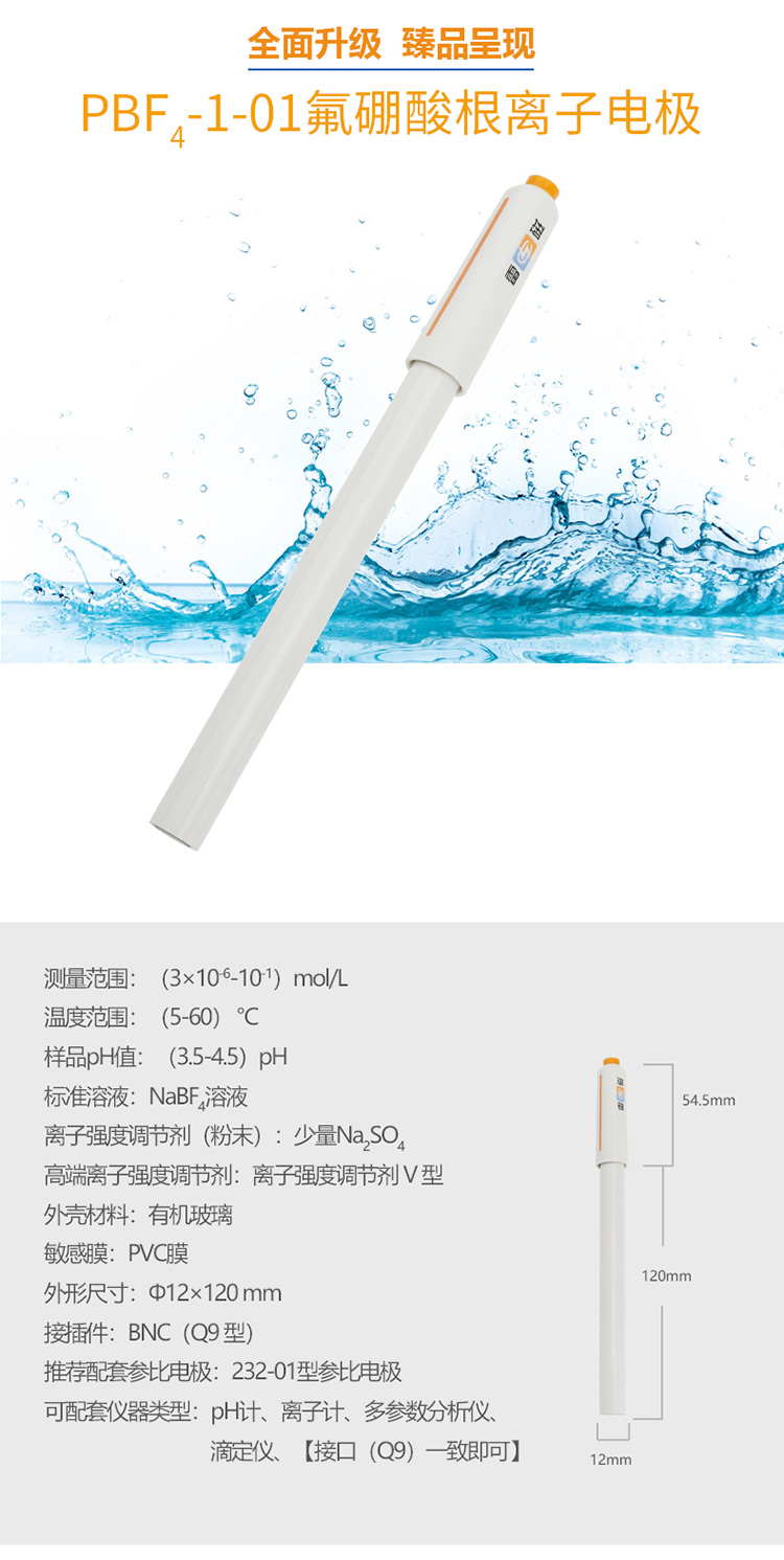雷磁PBF4-1-01型氟硼酸根離子電極 傳感器探頭離子選擇性電極