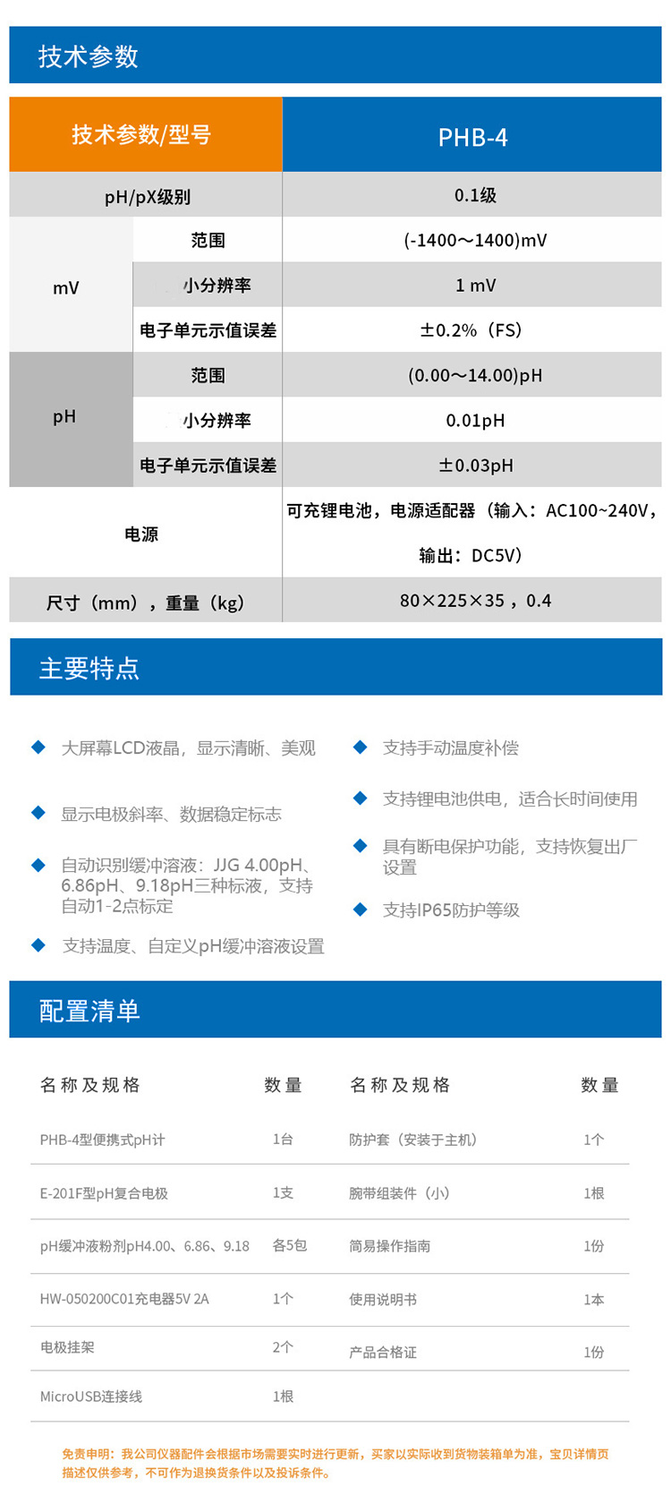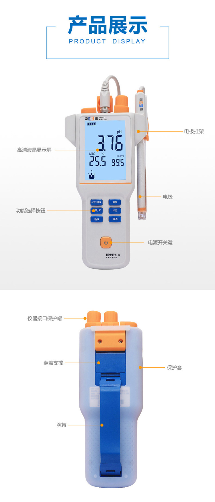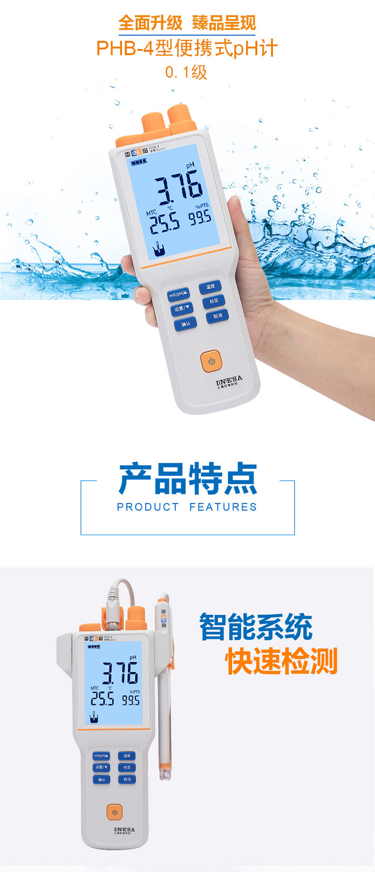 雷磁基礎(chǔ)款PHB-4型便攜式PH計(jì)標(biāo)配套裝手動(dòng)溫度補(bǔ)償液晶顯示