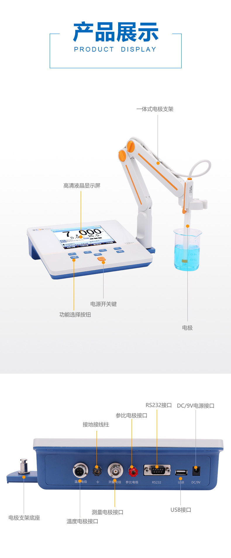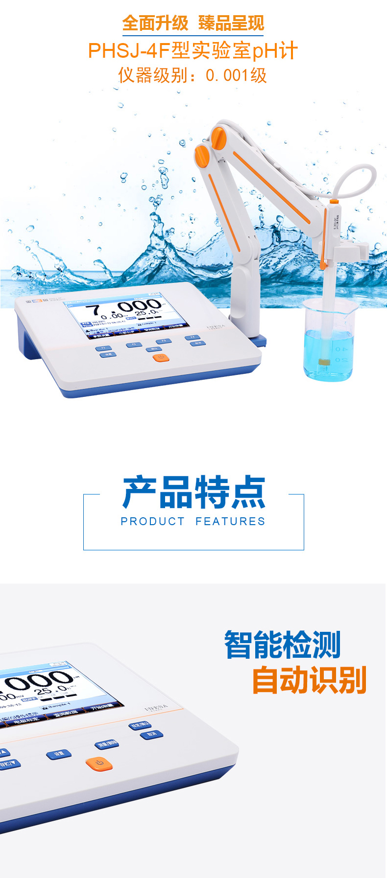 雷磁(leici)PHSJ-4F型實驗室PH計標配自動手動溫度補償酸度計PH分析儀器