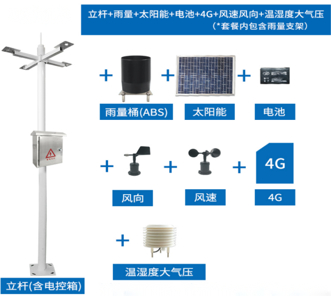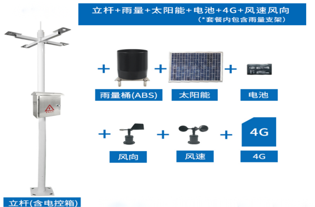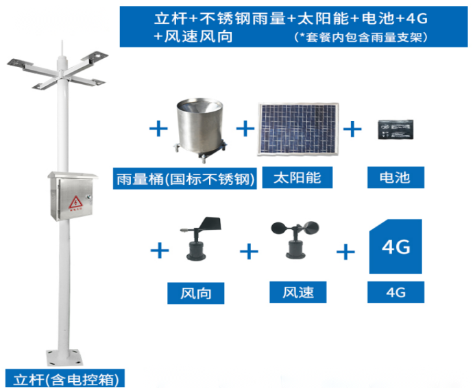 型號:風向、風速、雨雪暴雨降水量檢測一體化監測系統