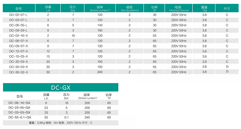 新道茨電磁隔膜計(jì)量泵加藥泵DC系列型號(hào)規(guī)格: