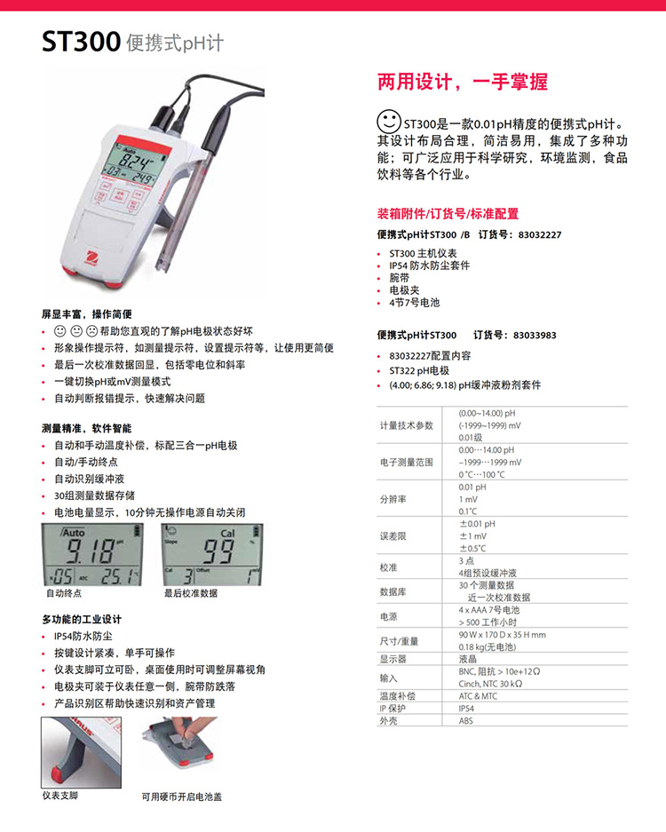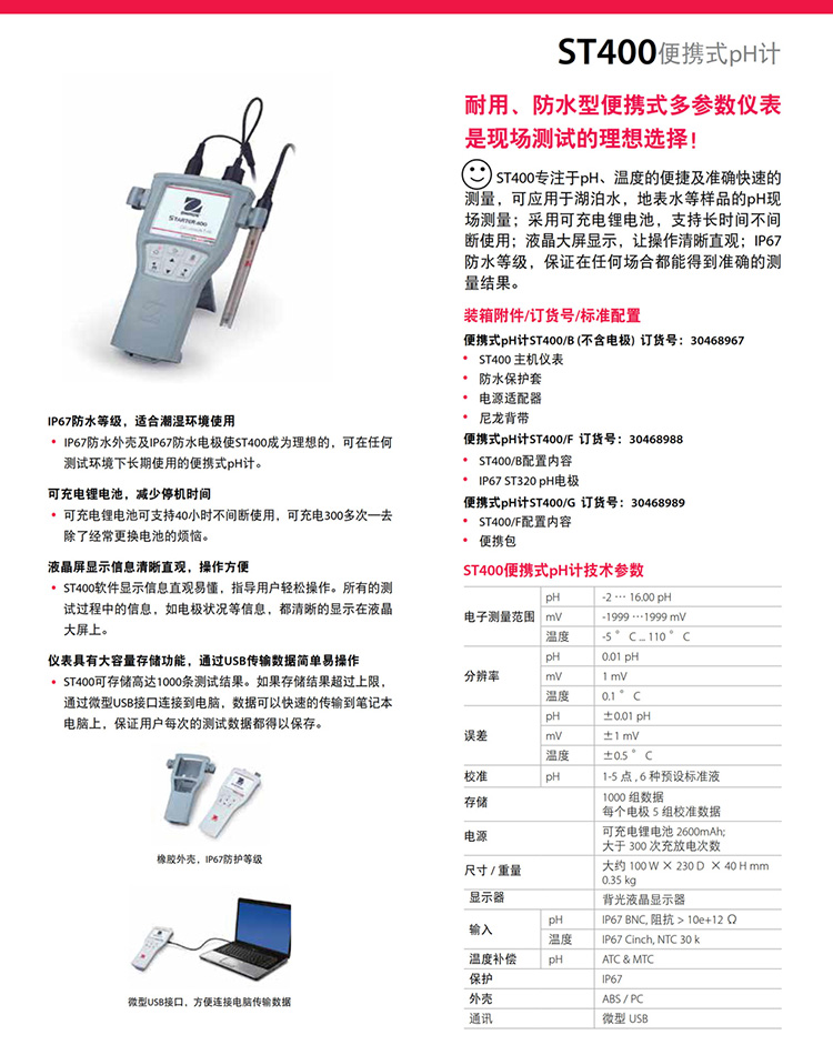 奧豪斯便攜式pH計(jì)ST300/ST400防水防塵酸度計(jì)檢測(cè)儀數(shù)顯ph測(cè)定儀