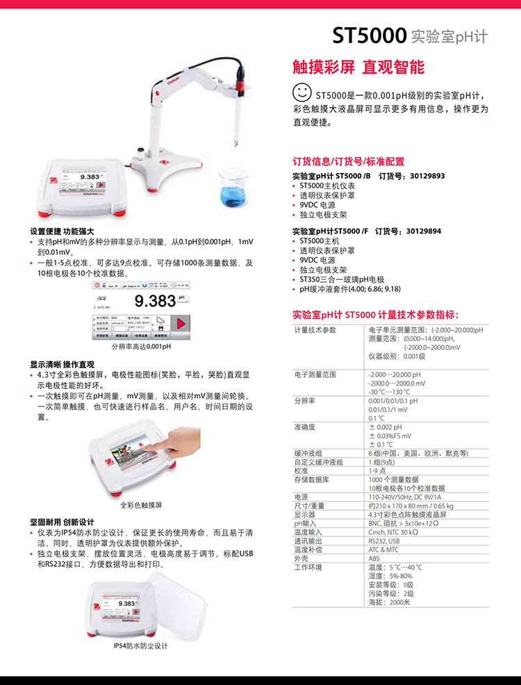 奧豪斯實驗室pH計ST5000/離子計ST5000i智能數顯ph測試儀ph控制器