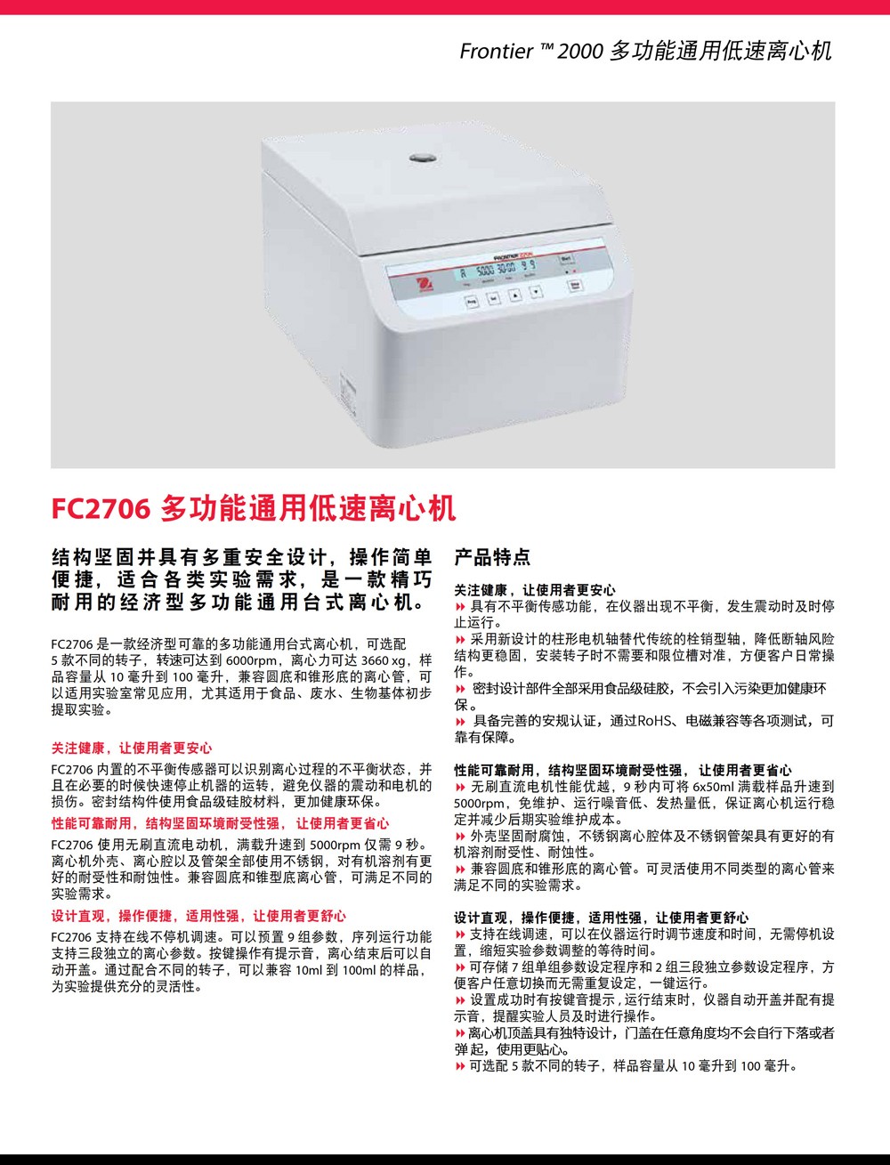 OHAUS奧豪斯FC2706多功能通用低速離心機實驗室經濟型臺式離心機