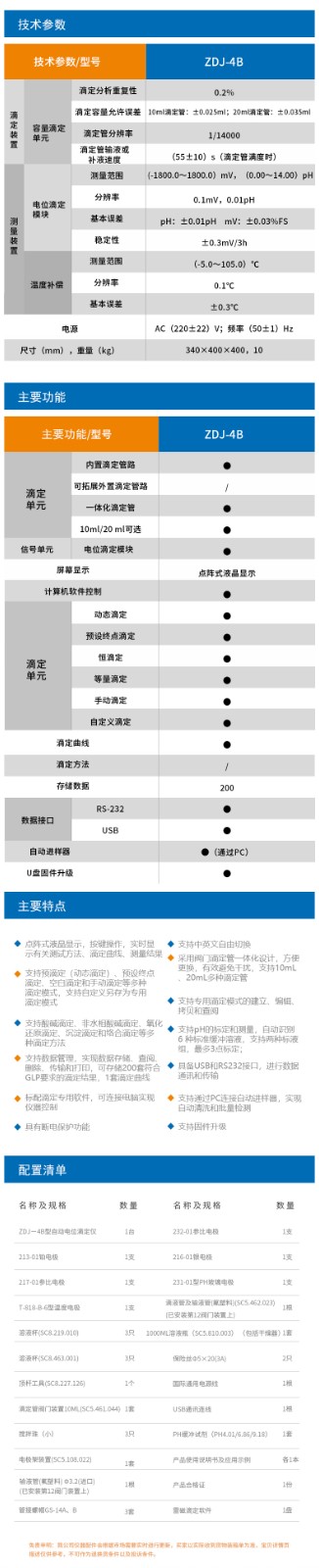 【雷磁】ZDJ-4B自動電位滴定儀 實驗室院校科研機構化學成分分析