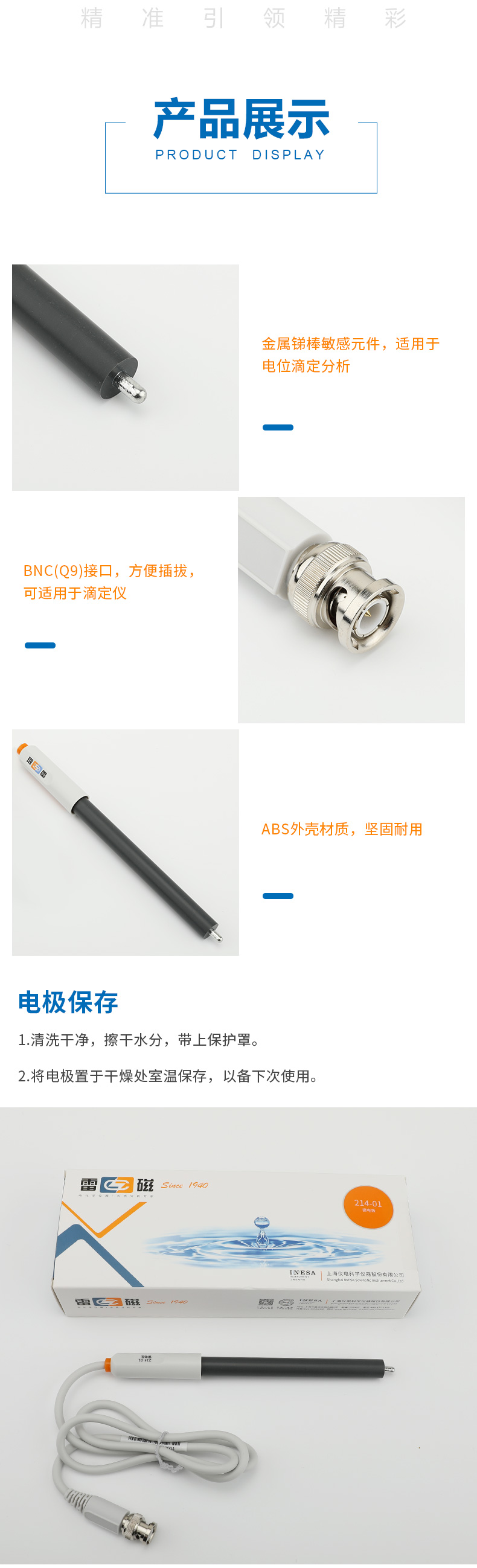 【雷磁】 金屬電極探頭傳感器 鉑銀銻鎢雙鉑 214-01銻