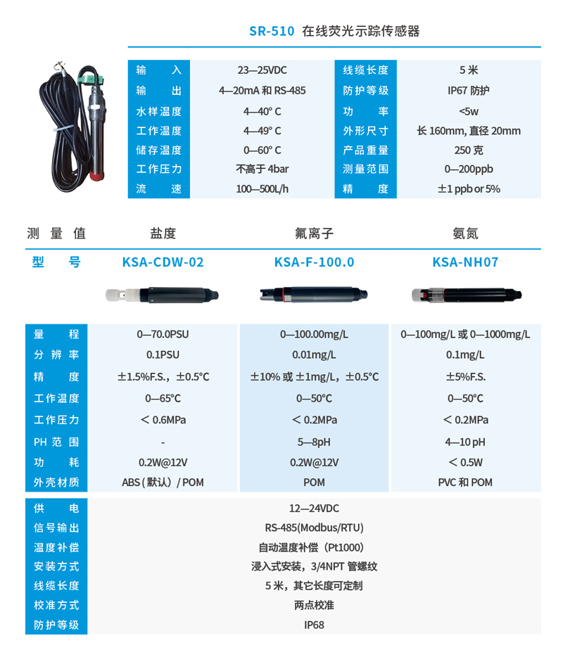 Apure數字傳感器工業在線智能鹽度/氟離子/氨氮/COD/BOD電 極探頭