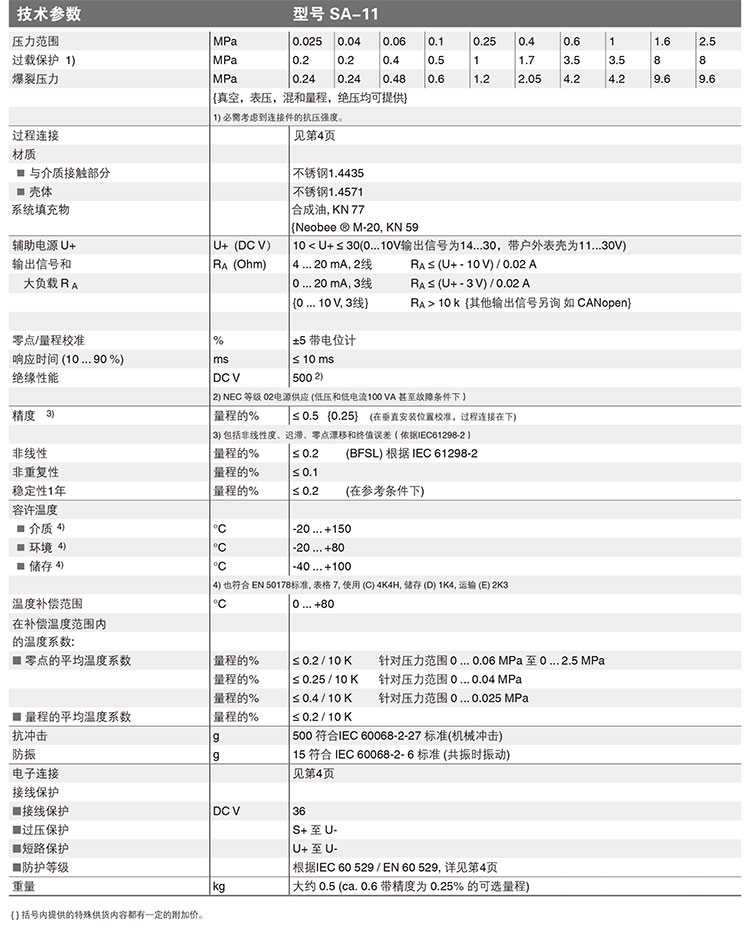 壓力范圍從0...25 kPa到0...2.5 MPa,壓力變送器SA-11是由直流DC 10 (14) ...30 V 供電。