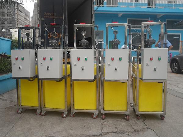 1、 溶液罐可選40L、100L、200L、500L,材質(zhì)為PE (200L和500L可選不銹鋼或碳鋼襯膠)。