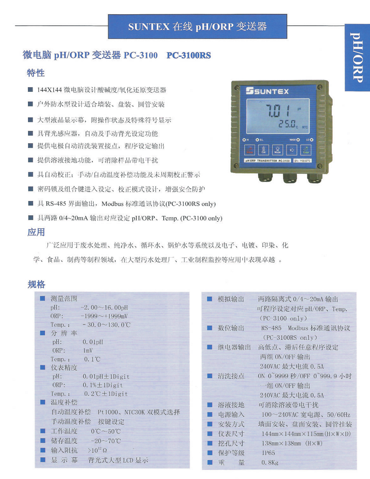 PH計PC-3100工業在線純水PH/ORP變送器配梅特勒405-60-SC電極