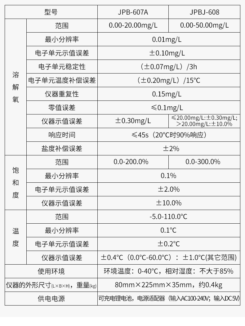 溶解氧儀JPB-607A-雷磁便攜式溶氧儀技術參數