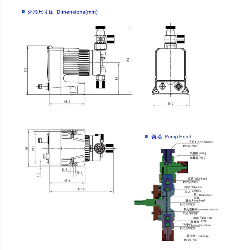 愛(ài)力浦JCMA電磁計(jì)量泵 擁有PVC、PVDF、304、316四種泵頭材質(zhì)