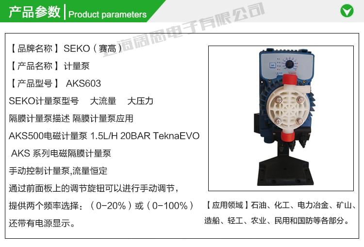 加藥計量泵AKS603 賽高SEKO工程塑料PVDF耐酸堿電磁驅動加藥泵