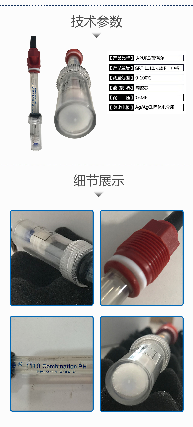 PH/ORP探頭GRT1110P愛普爾Apure水質監測在線酸度計陶瓷芯探頭