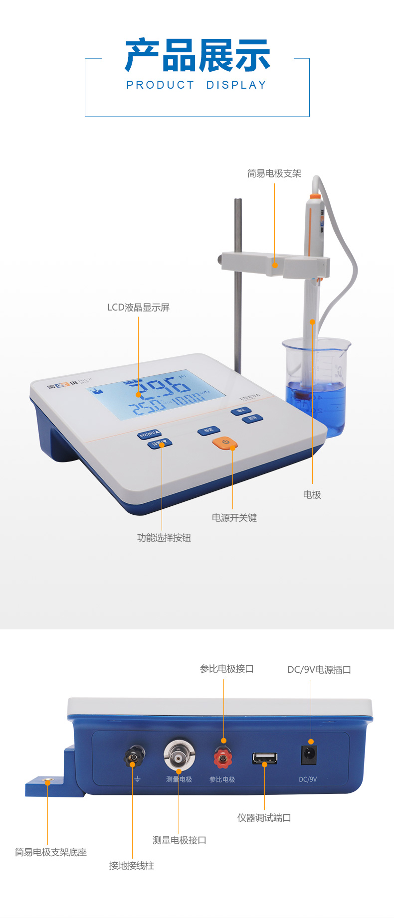 雷磁(leici)基礎款PHS-2F型實驗室PH計臺式標配套裝液晶顯示酸度計