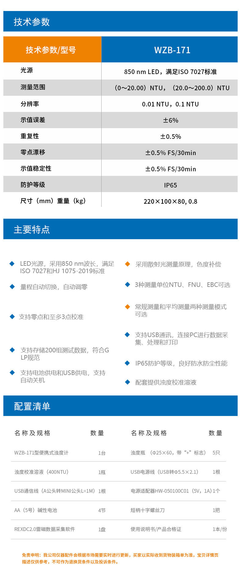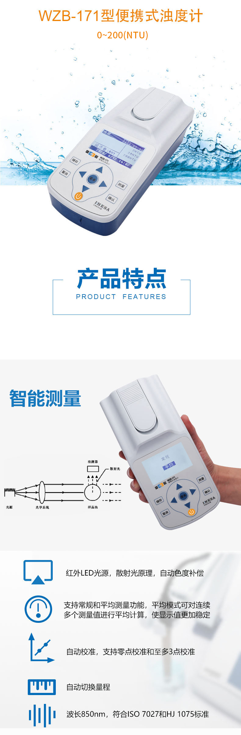 雷磁(leici)濁度儀WZB-171型便攜式濁度計(jì)分析儀標(biāo)準(zhǔn)套裝LED光源自動調(diào)零