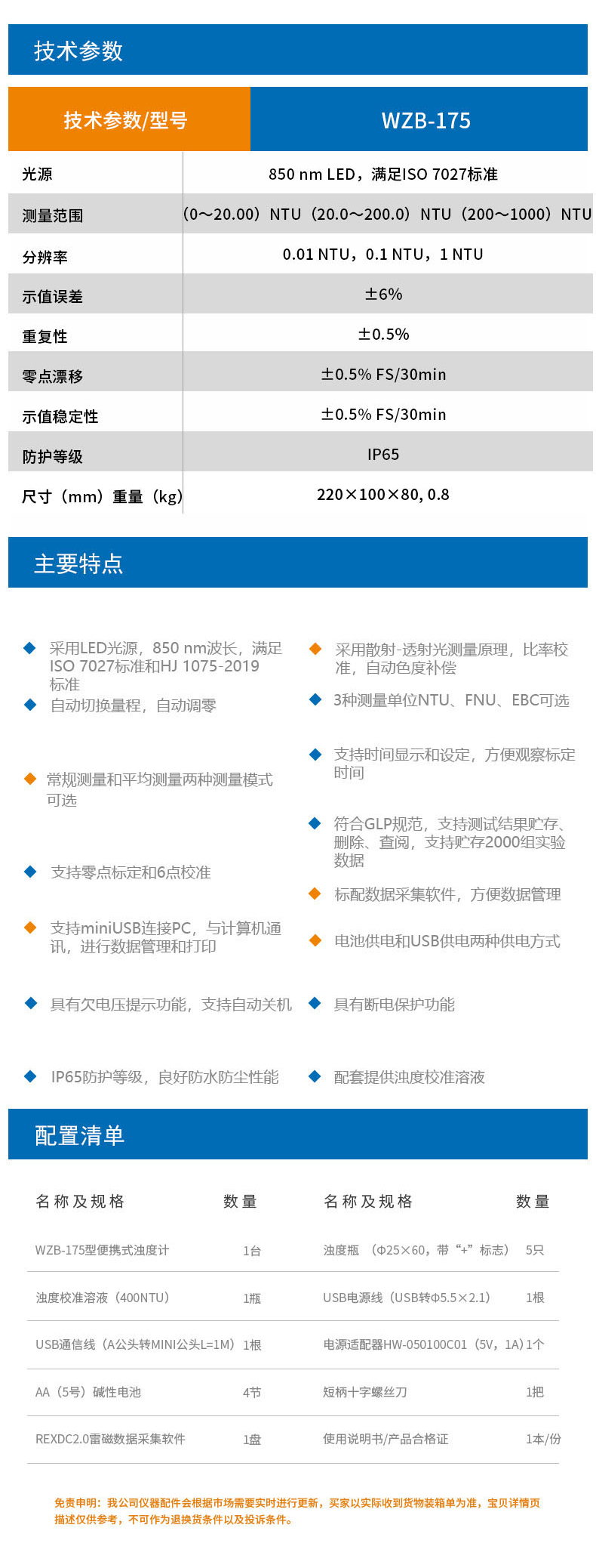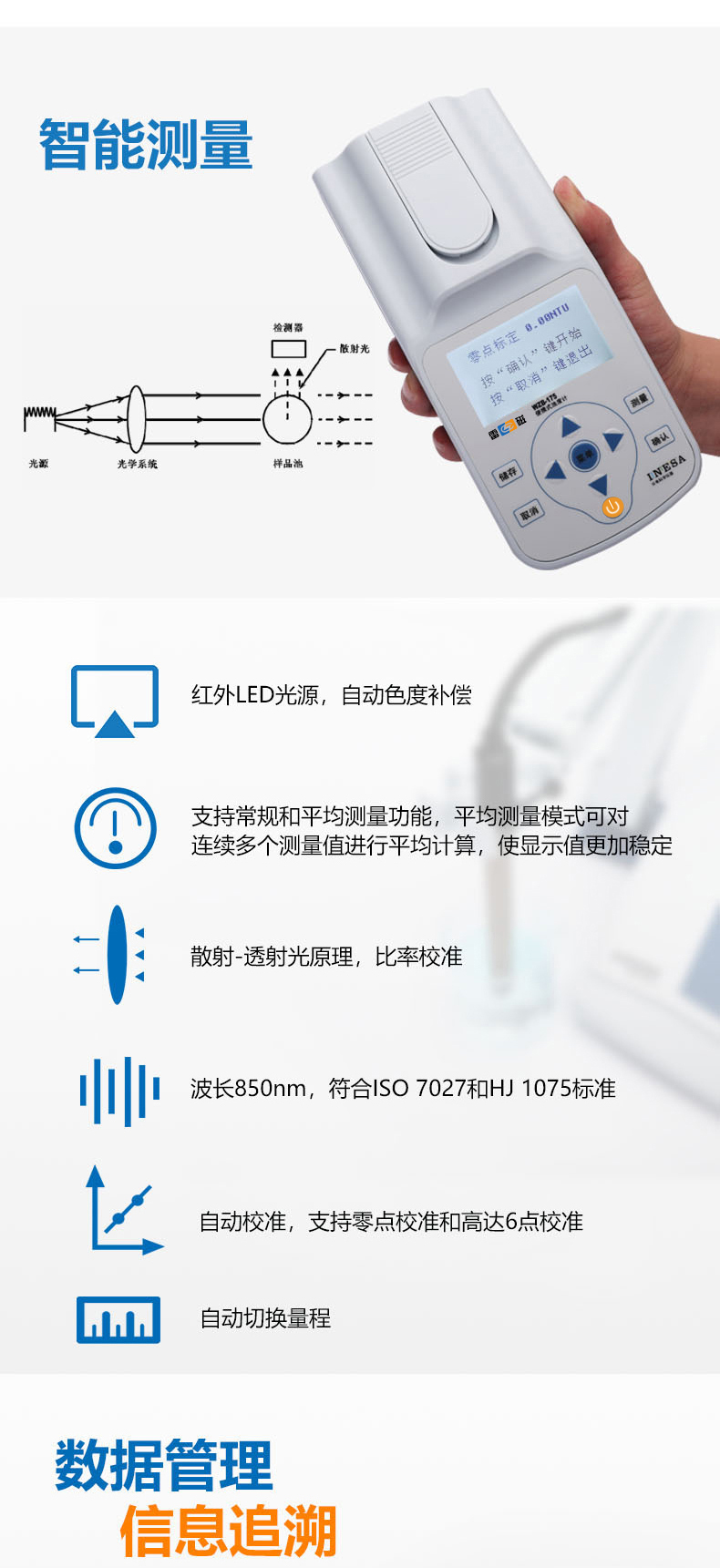 雷磁(leici)濁度儀WZB-175型便攜式濁度計(jì)水質(zhì)分析儀標(biāo)準(zhǔn)自動色度補(bǔ)償