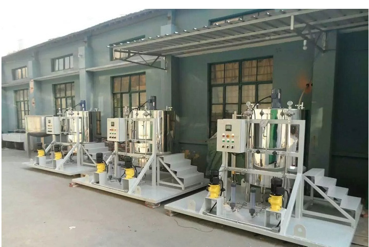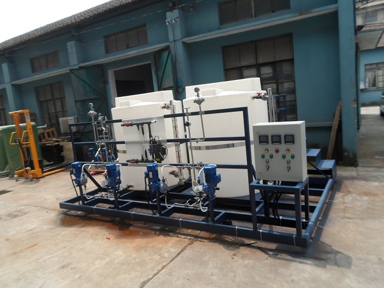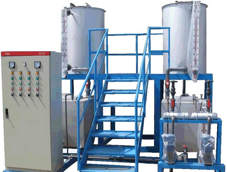 該裝置裝置配帶控制柜,可采用PLC控制或變頻控制。控制柜設(shè)置了低液位停泵、計(jì)量泵及攪拌機(jī)故障聲光報(bào)警等功能。