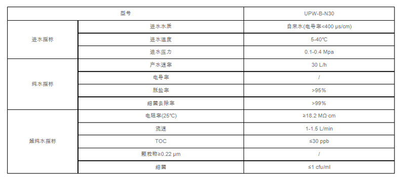1.預處理柱,反滲透柱,超純柱,微濾,純水箱等一體化設計,通水即用